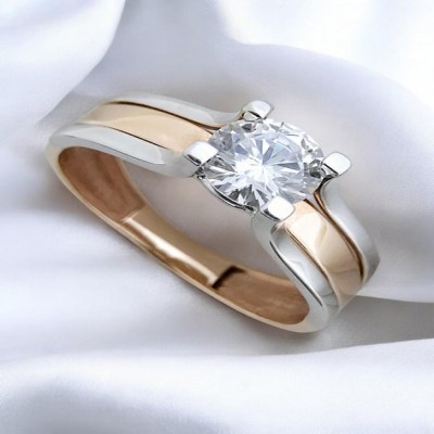 Дорогоцінна прикраса з комбінованого золота 585-ї проби - це втілення у собі витонченого шарму і елегантності. Унікальний дизайн каблучки чарує своєю привабливою формою та красивим відтінком. Основа прикраси виконана з червоного золота 585-ї проби, а верхня частина – з білого. У центрі колечка розташовується один більший камінчик кубічного оксиду цирконію круглого діамантового огранювання. Розкішна каблучка ідеально підійде для жінок, які цінують стиль і зручність в кожній деталі.