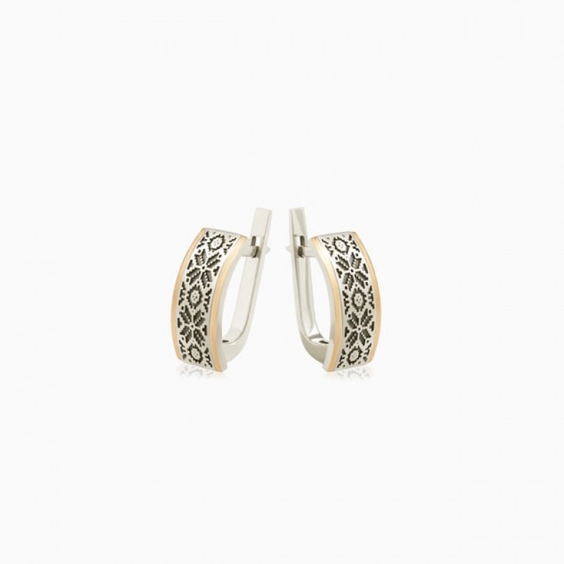 Срібні сережки з золотою пластиною Вишиванка Artsriblo арт24с